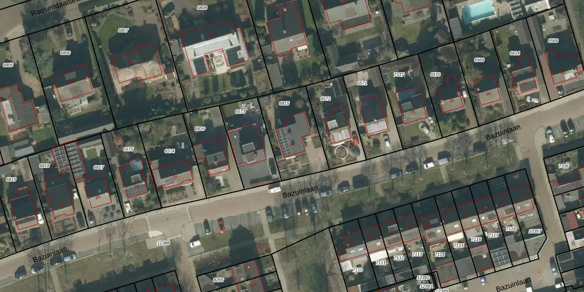 Bazuinlaan 76 is gelegen op kadastraal perceel ETN01L6815. Deze kadastrale aanduiding is uniek en wordt gebruikt door het Kadaster om eigendomsrechten en andere zakelijke rechten vast te leggen. Het perceel maakt onderdeel uit van de kadastrale gemeente Etten-Leur.