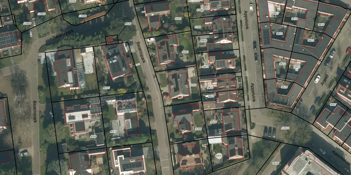 Het perceel waarop Beatrixpark 61 staat heeft een oppervlakte van 458 m². Dit is een groot perceel. De perceeloppervlakte wordt geregistreerd door het Kadaster. Gedetailleerde informatie over de maten van dit perceel kunt u vinden in het rapport Kadastrale kaart met maatvoering van Beatrixpark 61.
