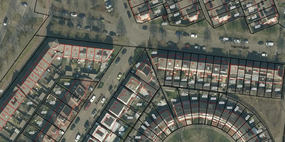 Het perceel waarop Buizerd 1 staat heeft een oppervlakte van 268 m². Dit is een middelgroot perceel. De perceeloppervlakte wordt geregistreerd door het Kadaster. Gedetailleerde informatie over de maten van dit perceel kunt u vinden in het rapport Kadastrale kaart met maatvoering van Buizerd 1.