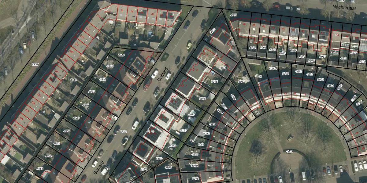 Het perceel waarop Buizerd 7 staat heeft een oppervlakte van 247 m². Dit is een middelgroot perceel. De perceeloppervlakte wordt geregistreerd door het Kadaster. Gedetailleerde informatie over de maten van dit perceel kunt u vinden in het rapport Kadastrale kaart met maatvoering van Buizerd 7.
