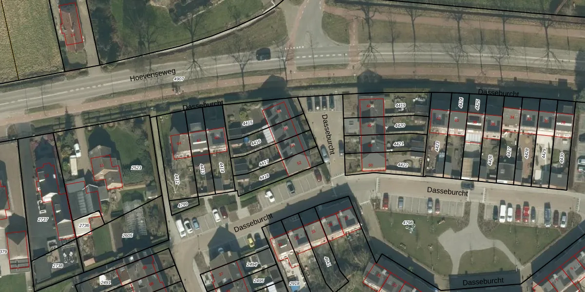 Dasseburcht 54 is gelegen op kadastraal perceel ETN01K4417. Deze kadastrale aanduiding is uniek en wordt gebruikt door het Kadaster om eigendomsrechten en andere zakelijke rechten vast te leggen. Het perceel maakt onderdeel uit van de kadastrale gemeente Etten-Leur.