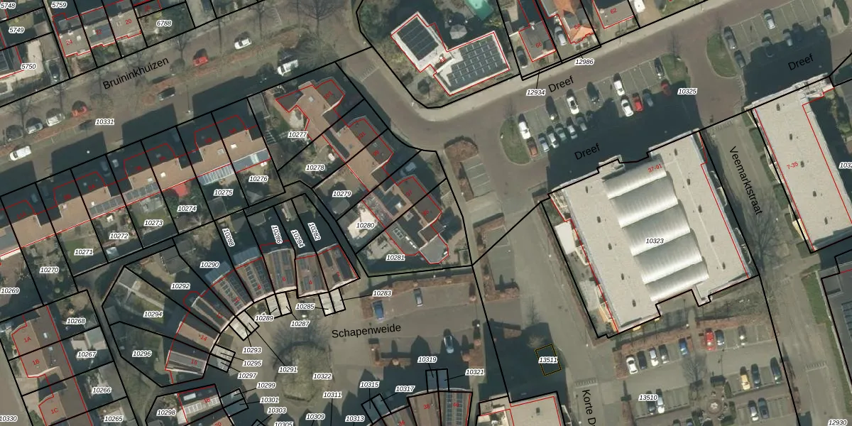 Het perceel waarop Dreef 95 staat heeft een oppervlakte van 355 m². Dit is een groot perceel. De perceeloppervlakte wordt geregistreerd door het Kadaster. Gedetailleerde informatie over de maten van dit perceel kunt u vinden in het rapport Kadastrale kaart met maatvoering van Dreef 95.