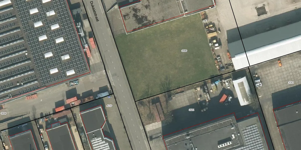 Het adres is gelegen op perceel 3596 in de sectie H en de kadastrale gemeente Etten-Leur. De kadastrale aanduiding is aldus ETN01-H-3596. De oppervlakte van het perceel is 9535 m². Dat is groter dan gemiddeld in Etten-Leur, waar de gemiddelde perceeloppervlakte op 2573,22 m² ligt. De grootste perceeloppervlakte in de kadastrale gemeente is 27,5 ha. De kleinste oppervlakte bedraagt 0 m². Er zijn 16 adressen aanwezig op het perceel. De huidige grenzen van het perceel zijn digitaal in de Basisregistratie Kadaster (BRK) geregistreerd op 18-09-2008.