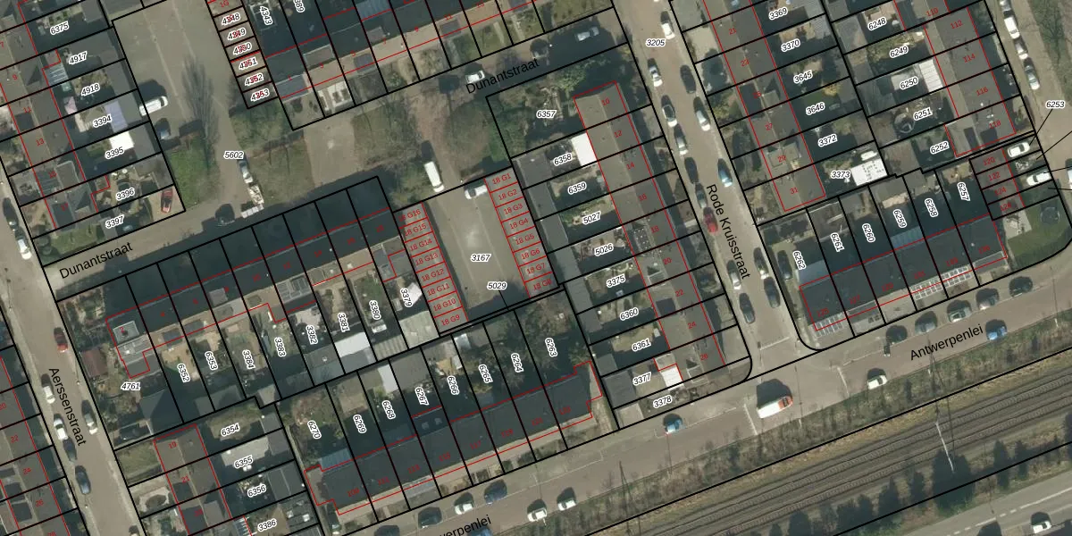 Dunantstraat 18-G7 is gelegen op kadastraal perceel ETN01E3167. Deze kadastrale aanduiding is uniek en wordt gebruikt door het Kadaster om eigendomsrechten en andere zakelijke rechten vast te leggen. Het perceel maakt onderdeel uit van de kadastrale gemeente Etten-Leur.