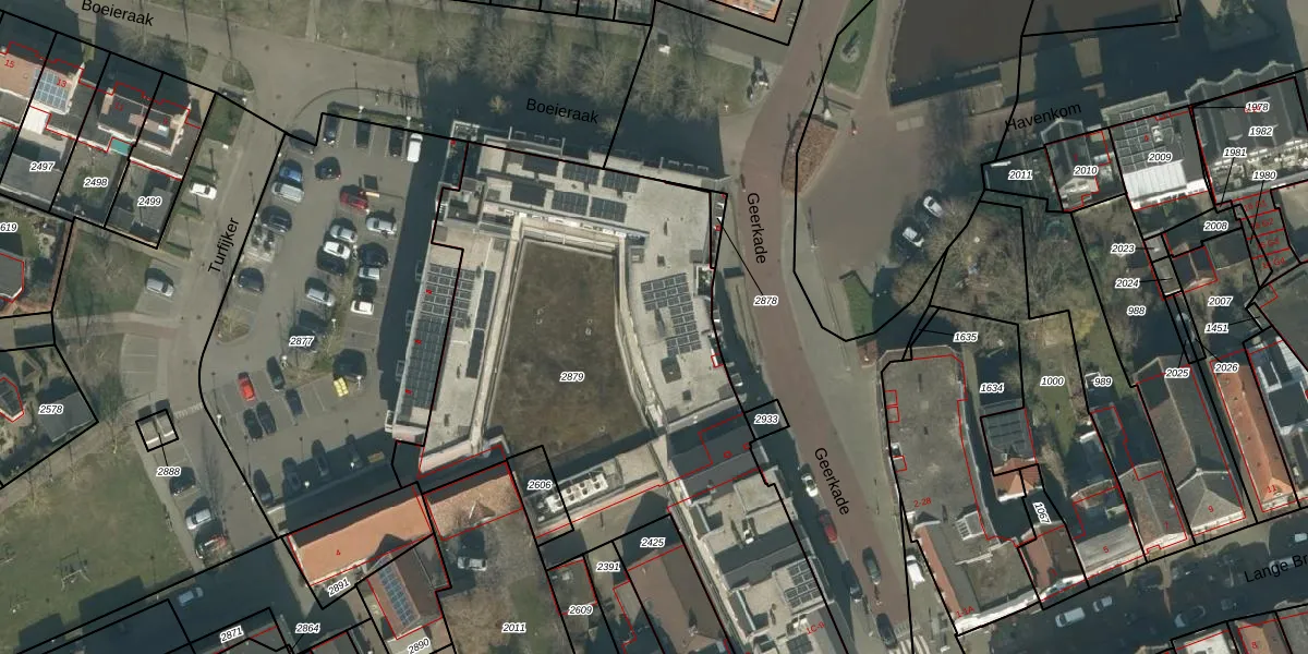 Het perceel waarop Geerkade 5-R staat heeft een oppervlakte van 2820 m². Dit is een zeer groot perceel. De perceeloppervlakte wordt geregistreerd door het Kadaster. Gedetailleerde informatie over de maten van dit perceel kunt u vinden in het rapport Kadastrale kaart met maatvoering van Geerkade 5-R.