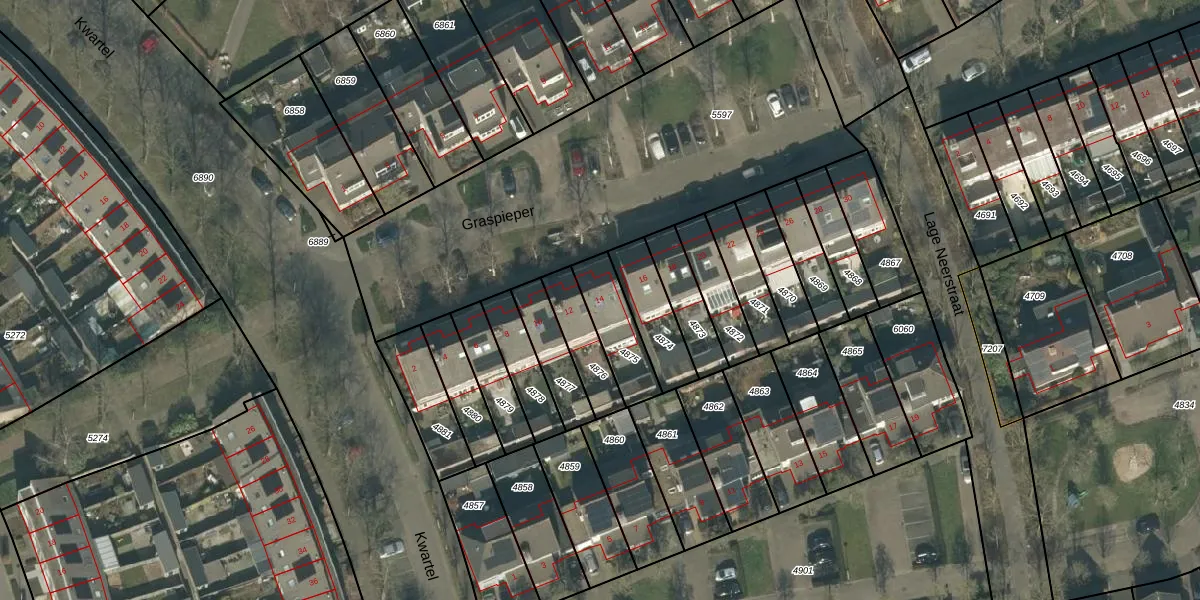 Graspieper 14 is gelegen op kadastraal perceel ETN01E4875. Deze kadastrale aanduiding is uniek en wordt gebruikt door het Kadaster om eigendomsrechten en andere zakelijke rechten vast te leggen. Het perceel maakt onderdeel uit van de kadastrale gemeente Etten-Leur.