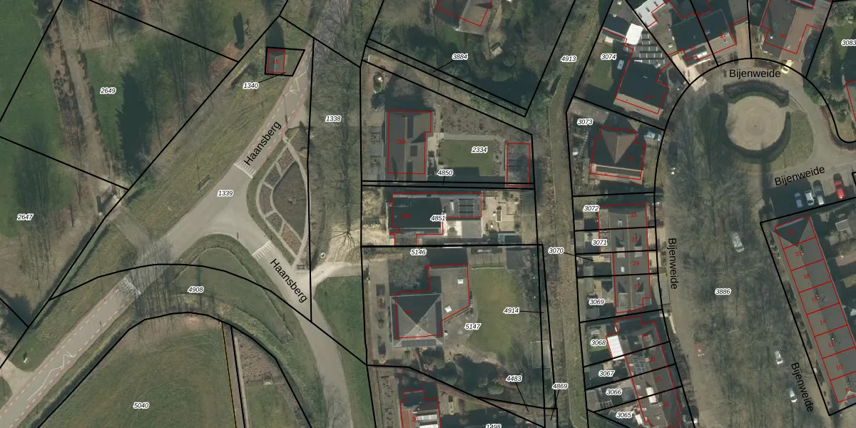 Het perceel waarop Haansberg 28-B staat heeft een oppervlakte van 556 m². Dit is een groot perceel. De perceeloppervlakte wordt geregistreerd door het Kadaster. Gedetailleerde informatie over de maten van dit perceel kunt u vinden in het rapport Kadastrale kaart met maatvoering van Haansberg 28-B.