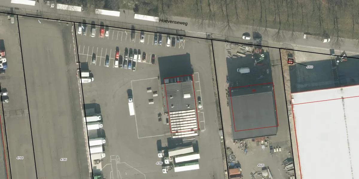 Het perceel waarop Hoevenseweg 39-D staat heeft een oppervlakte van 1,1 ha. Dit is een zeer groot perceel. De perceeloppervlakte wordt geregistreerd door het Kadaster. Gedetailleerde informatie over de maten van dit perceel kunt u vinden in het rapport Kadastrale kaart met maatvoering van Hoevenseweg 39-D.