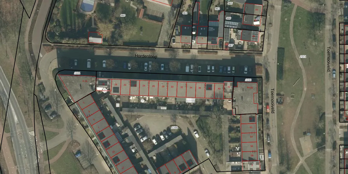 Hordenloop 30 is gelegen op kadastraal perceel ETN01P1100. Deze kadastrale aanduiding is uniek en wordt gebruikt door het Kadaster om eigendomsrechten en andere zakelijke rechten vast te leggen. Het perceel maakt onderdeel uit van de kadastrale gemeente Etten-Leur.