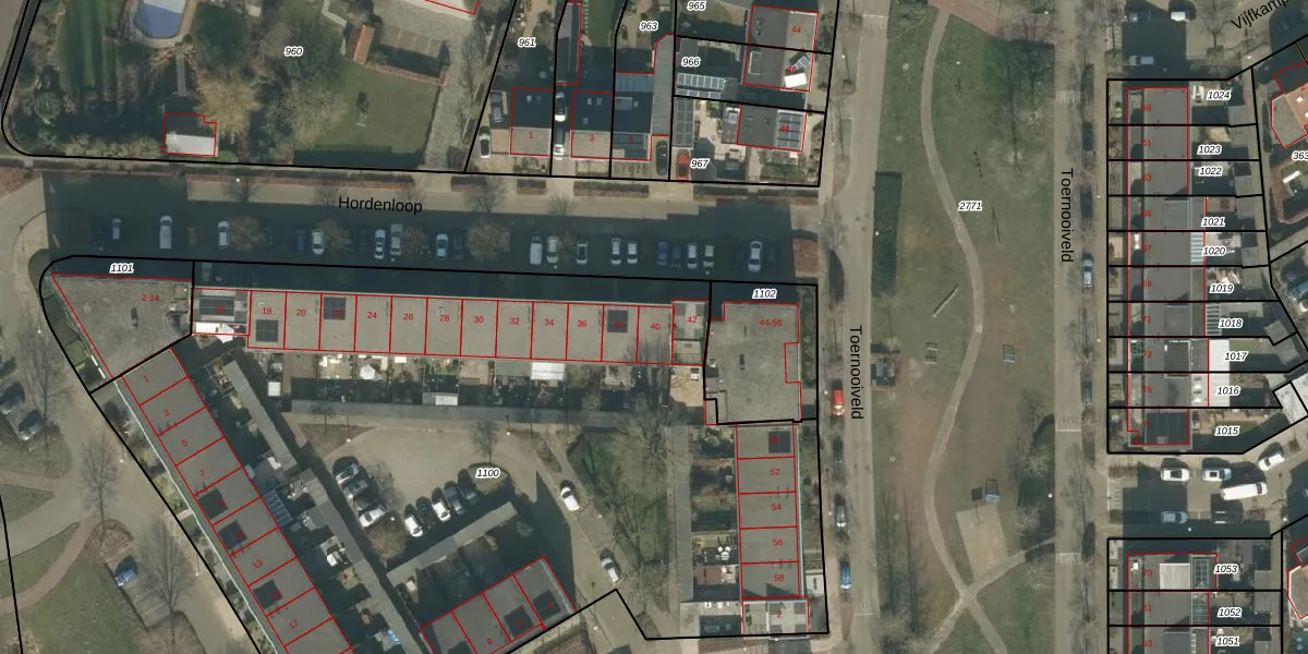 Hordenloop 40 is gelegen op kadastraal perceel ETN01P1100. Deze kadastrale aanduiding is uniek en wordt gebruikt door het Kadaster om eigendomsrechten en andere zakelijke rechten vast te leggen. Het perceel maakt onderdeel uit van de kadastrale gemeente Etten-Leur.