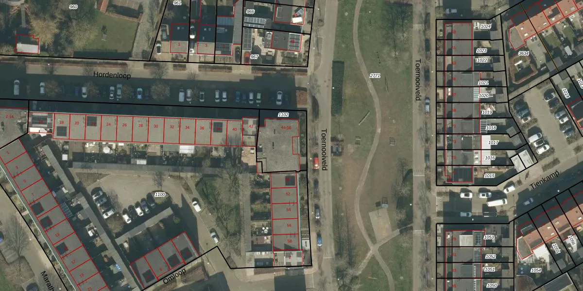 Hordenloop 54 is gelegen op kadastraal perceel ETN01P1102. Deze kadastrale aanduiding is uniek en wordt gebruikt door het Kadaster om eigendomsrechten en andere zakelijke rechten vast te leggen. Het perceel maakt onderdeel uit van de kadastrale gemeente Etten-Leur.