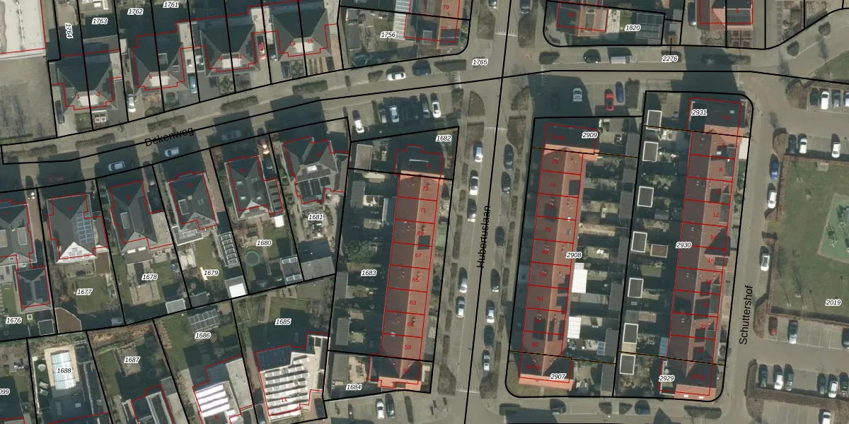 Het perceel waarop Hubertuslaan 71 staat heeft een oppervlakte van 1082 m². Dit is een zeer groot perceel. De perceeloppervlakte wordt geregistreerd door het Kadaster. Gedetailleerde informatie over de maten van dit perceel kunt u vinden in het rapport Kadastrale kaart met maatvoering van Hubertuslaan 71.