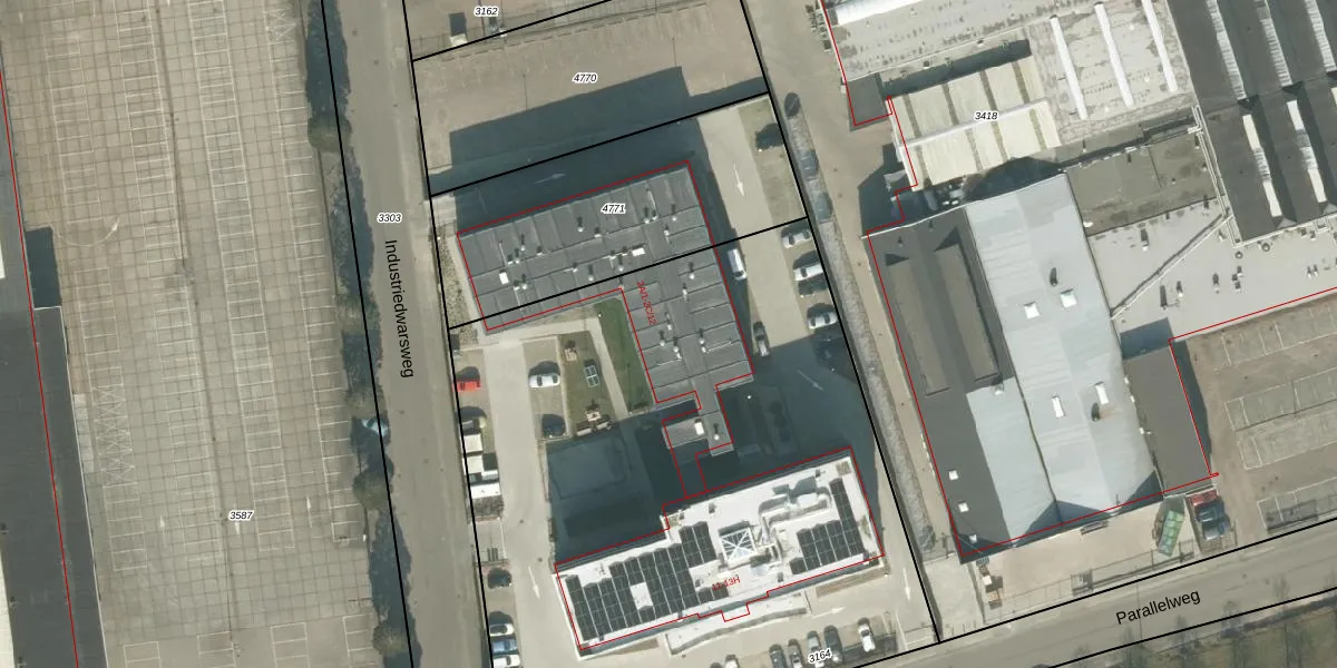 Het perceel waarop Industriedwarsweg 2-B-9 staat heeft een oppervlakte van 4130 m². Dit is een zeer groot perceel. De perceeloppervlakte wordt geregistreerd door het Kadaster. Gedetailleerde informatie over de maten van dit perceel kunt u vinden in het rapport Kadastrale kaart met maatvoering van Industriedwarsweg 2-B-9.