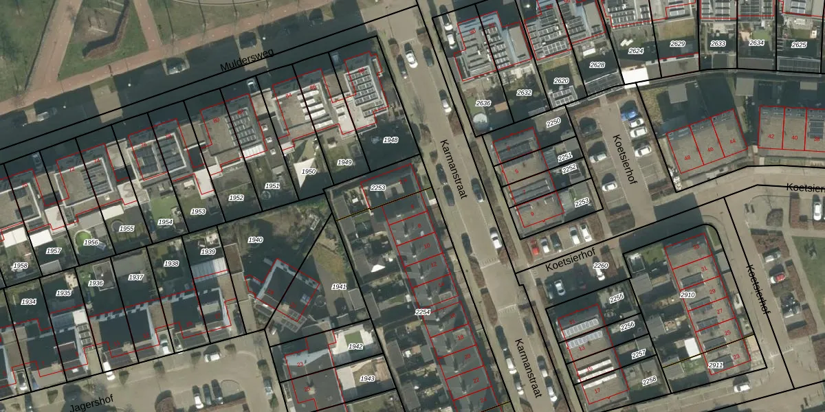 Het perceel waarop Karmanstraat 6 staat heeft een oppervlakte van 1382 m². Dit is een zeer groot perceel. De perceeloppervlakte wordt geregistreerd door het Kadaster. Gedetailleerde informatie over de maten van dit perceel kunt u vinden in het rapport Kadastrale kaart met maatvoering van Karmanstraat 6.