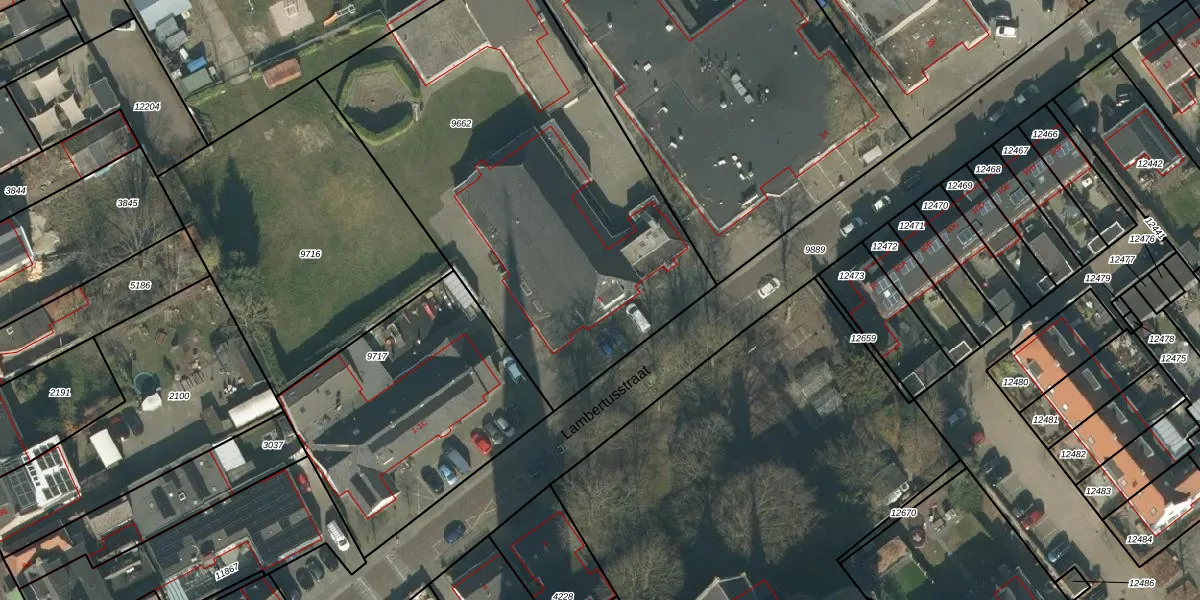 Het perceel waarop Lambertusstraat 3 staat heeft een oppervlakte van 2430 m². Dit is een zeer groot perceel. De perceeloppervlakte wordt geregistreerd door het Kadaster. Gedetailleerde informatie over de maten van dit perceel kunt u vinden in het rapport Kadastrale kaart met maatvoering van Lambertusstraat 3.