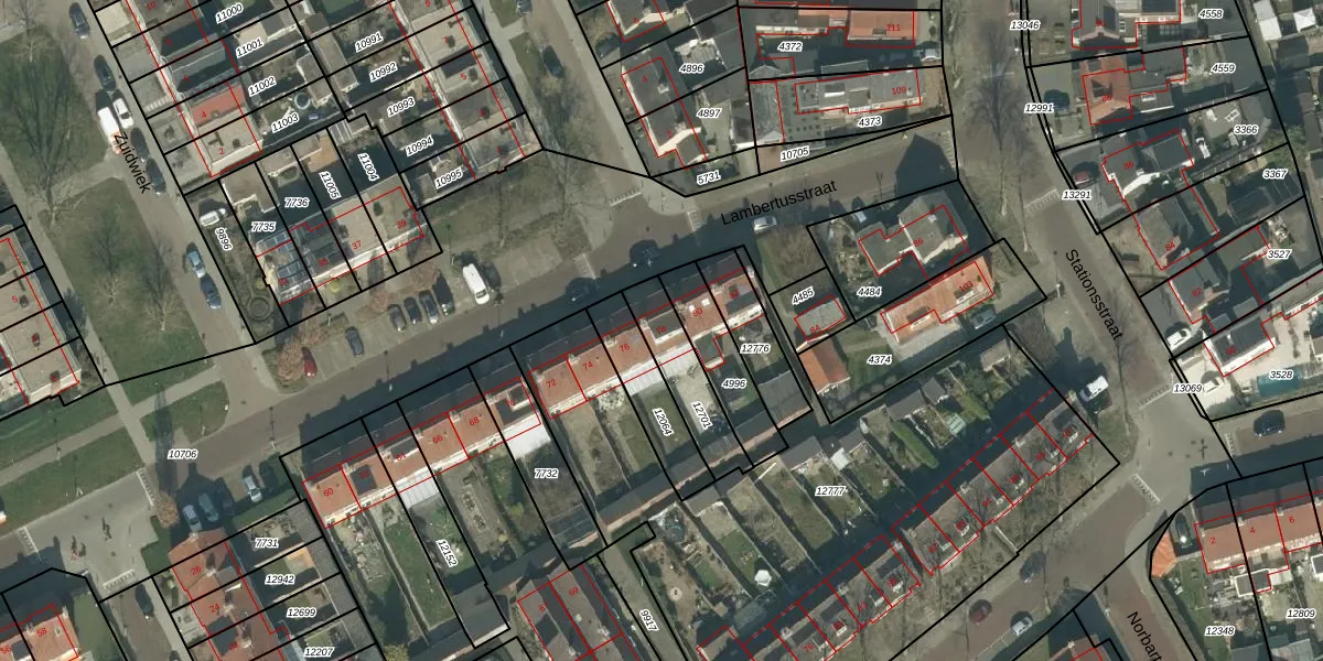 Het perceel waarop Lambertusstraat 78 staat heeft een oppervlakte van 195 m². Dit is een middelgroot perceel. De perceeloppervlakte wordt geregistreerd door het Kadaster. Gedetailleerde informatie over de maten van dit perceel kunt u vinden in het rapport Kadastrale kaart met maatvoering van Lambertusstraat 78.