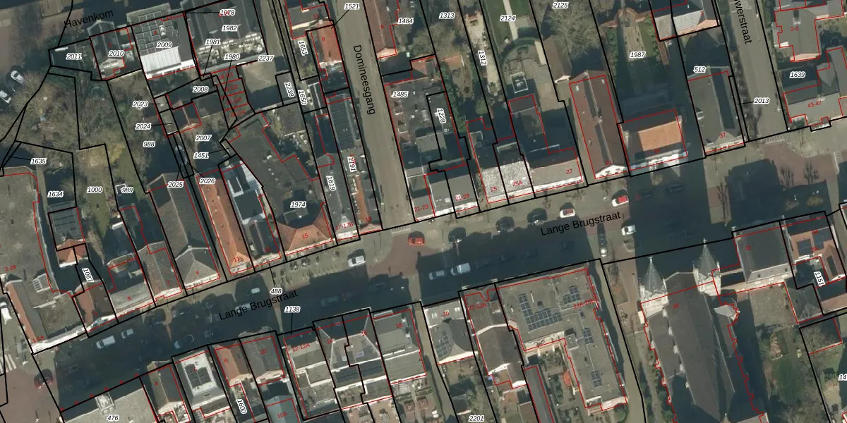 Het perceel waarop Lange Brugstraat 21 staat heeft een oppervlakte van 371 m². Dit is een groot perceel. De perceeloppervlakte wordt geregistreerd door het Kadaster. Gedetailleerde informatie over de maten van dit perceel kunt u vinden in het rapport Kadastrale kaart met maatvoering van Lange Brugstraat 21.