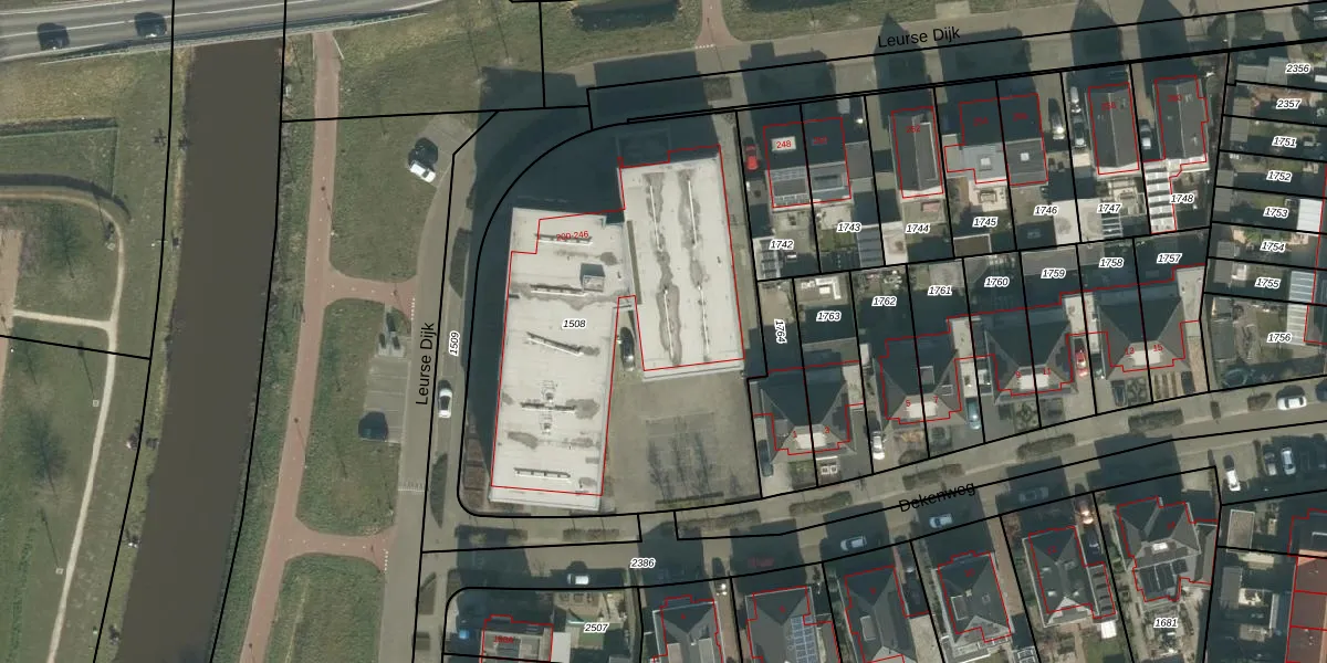 Het perceel waarop Leurse Dijk 236 staat heeft een oppervlakte van 2389 m². Dit is een zeer groot perceel. De perceeloppervlakte wordt geregistreerd door het Kadaster. Gedetailleerde informatie over de maten van dit perceel kunt u vinden in het rapport Kadastrale kaart met maatvoering van Leurse Dijk 236.