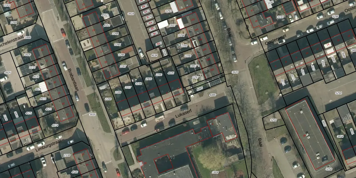 Lukaserf 11 is gelegen op kadastraal perceel ETN01K4635. Deze kadastrale aanduiding is uniek en wordt gebruikt door het Kadaster om eigendomsrechten en andere zakelijke rechten vast te leggen. Het perceel maakt onderdeel uit van de kadastrale gemeente Etten-Leur.