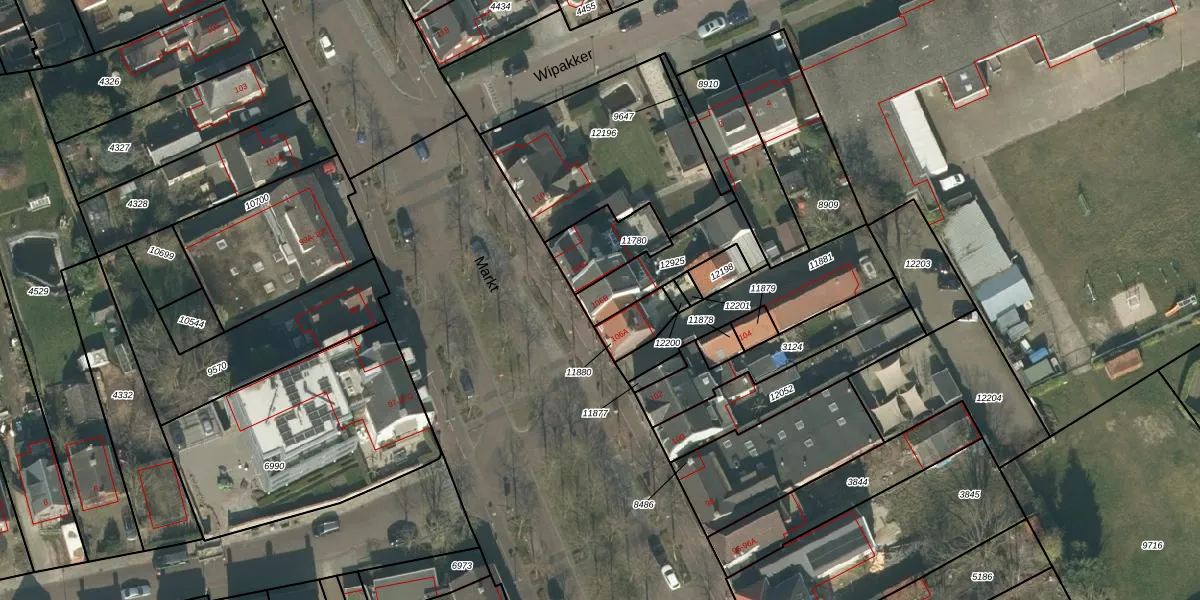 Het perceel waarop Markt 106-B staat heeft een oppervlakte van 206 m². Dit is een middelgroot perceel. De perceeloppervlakte wordt geregistreerd door het Kadaster. Gedetailleerde informatie over de maten van dit perceel kunt u vinden in het rapport Kadastrale kaart met maatvoering van Markt 106-B.
