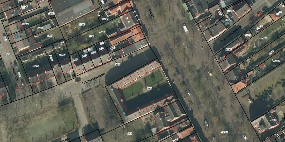 Het perceel waarop Markt 69 staat heeft een oppervlakte van 1315 m². Dit is een zeer groot perceel. De perceeloppervlakte wordt geregistreerd door het Kadaster. Gedetailleerde informatie over de maten van dit perceel kunt u vinden in het rapport Kadastrale kaart met maatvoering van Markt 69.