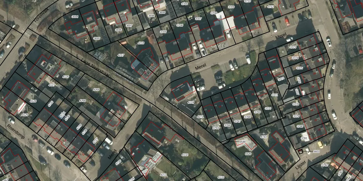 Het perceel waarop Merel 14 staat heeft een oppervlakte van 301 m². Dit is een groot perceel. De perceeloppervlakte wordt geregistreerd door het Kadaster. Gedetailleerde informatie over de maten van dit perceel kunt u vinden in het rapport Kadastrale kaart met maatvoering van Merel 14.