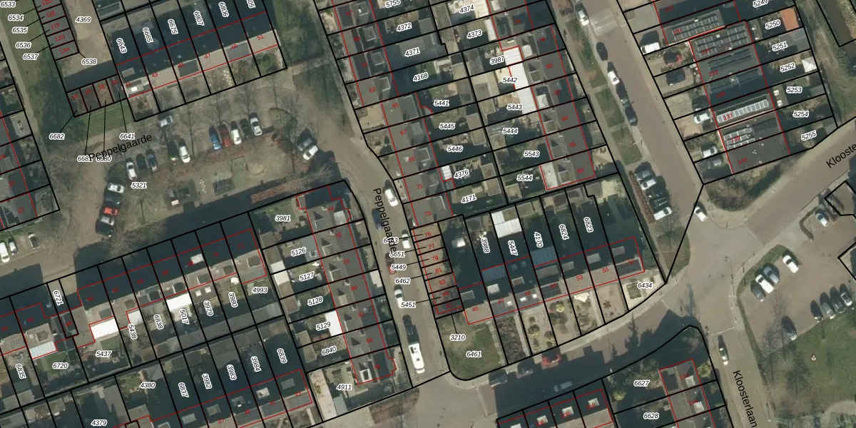 Gebruik de zoekbalk of klik op een perceel voor informatie over de adressen binnen dit perceel.