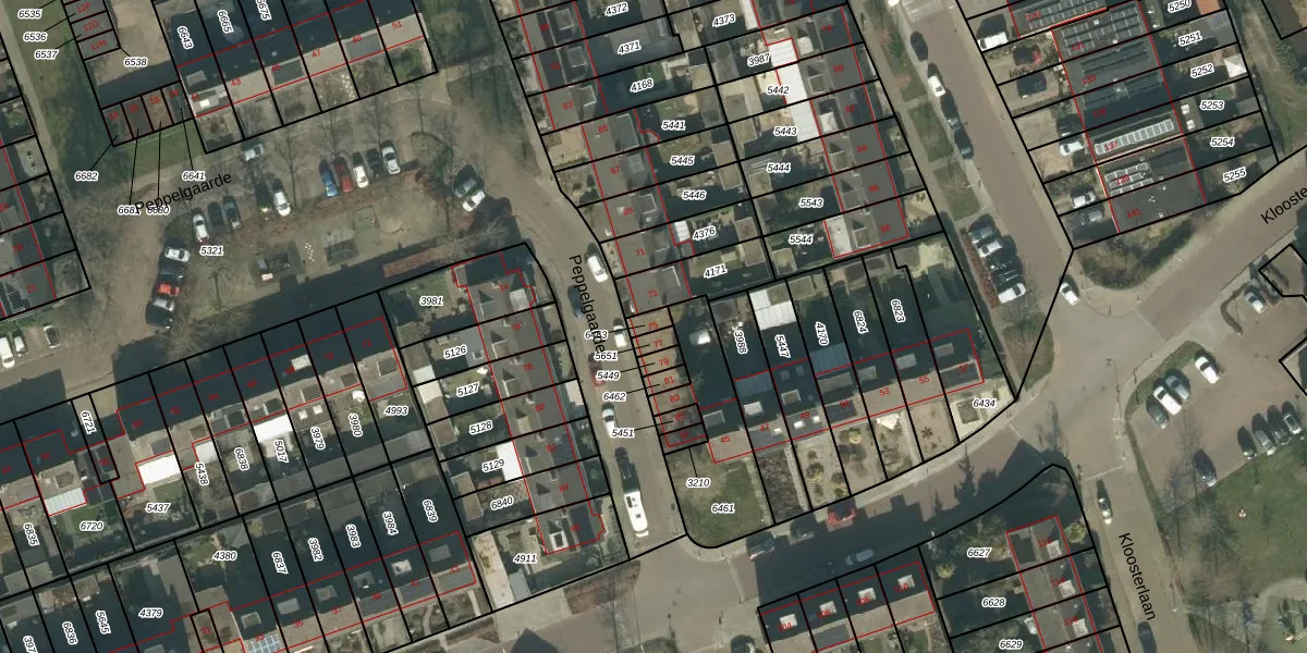 Peppelgaarde 75 is gelegen op kadastraal perceel ETN01E6463. Deze kadastrale aanduiding is uniek en wordt gebruikt door het Kadaster om eigendomsrechten en andere zakelijke rechten vast te leggen. Het perceel maakt onderdeel uit van de kadastrale gemeente Etten-Leur.