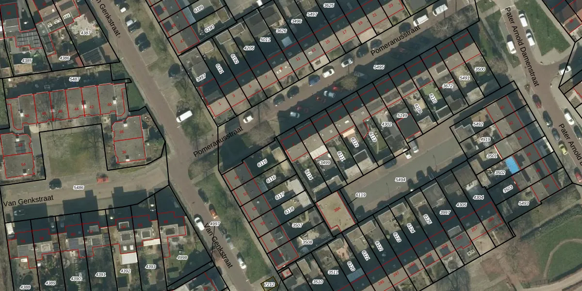 Het perceel waarop Pomeranusstraat 2 staat heeft een oppervlakte van 185 m². Dit is een middelgroot perceel. De perceeloppervlakte wordt geregistreerd door het Kadaster. Gedetailleerde informatie over de maten van dit perceel kunt u vinden in het rapport Kadastrale kaart met maatvoering van Pomeranusstraat 2.
