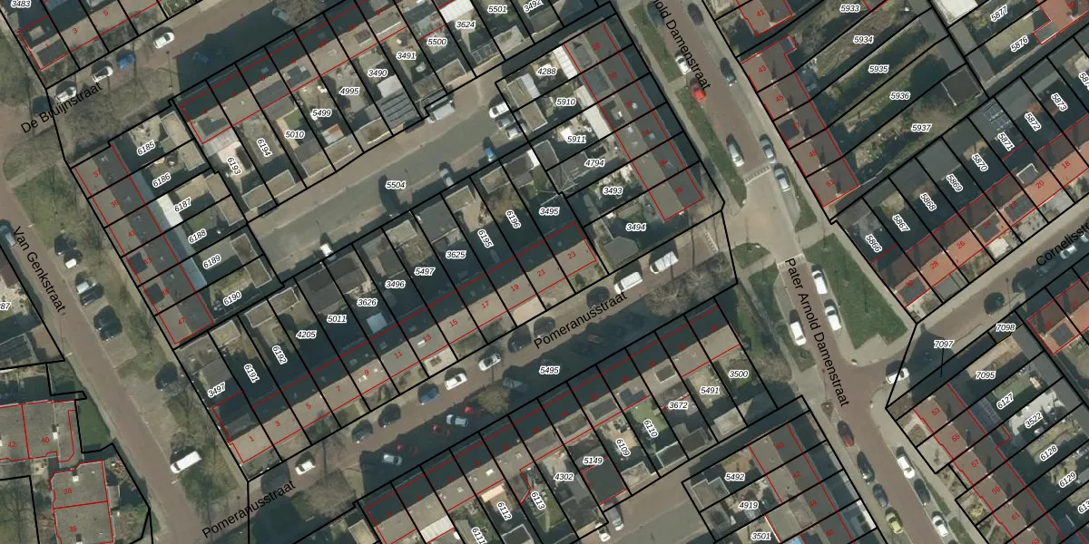 Pomeranusstraat 21 is gelegen op kadastraal perceel ETN01E6196. Deze kadastrale aanduiding is uniek en wordt gebruikt door het Kadaster om eigendomsrechten en andere zakelijke rechten vast te leggen. Het perceel maakt onderdeel uit van de kadastrale gemeente Etten-Leur.