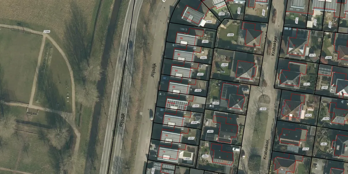 Het perceel waarop Rijsdijk 82 staat heeft een oppervlakte van 263 m². Dit is een middelgroot perceel. De perceeloppervlakte wordt geregistreerd door het Kadaster. Gedetailleerde informatie over de maten van dit perceel kunt u vinden in het rapport Kadastrale kaart met maatvoering van Rijsdijk 82.