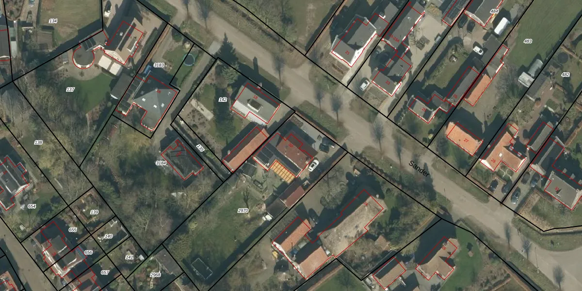 Het perceel waarop Sander 20 staat heeft een oppervlakte van 1525 m². Dit is een zeer groot perceel. De perceeloppervlakte wordt geregistreerd door het Kadaster. Gedetailleerde informatie over de maten van dit perceel kunt u vinden in het rapport Kadastrale kaart met maatvoering van Sander 20.