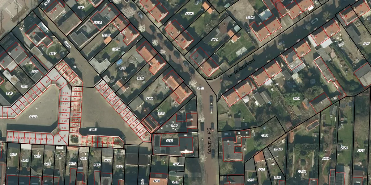 Schonckweg 9 is gelegen op kadastraal perceel ETN01L5350. Deze kadastrale aanduiding is uniek en wordt gebruikt door het Kadaster om eigendomsrechten en andere zakelijke rechten vast te leggen. Het perceel maakt onderdeel uit van de kadastrale gemeente Etten-Leur.