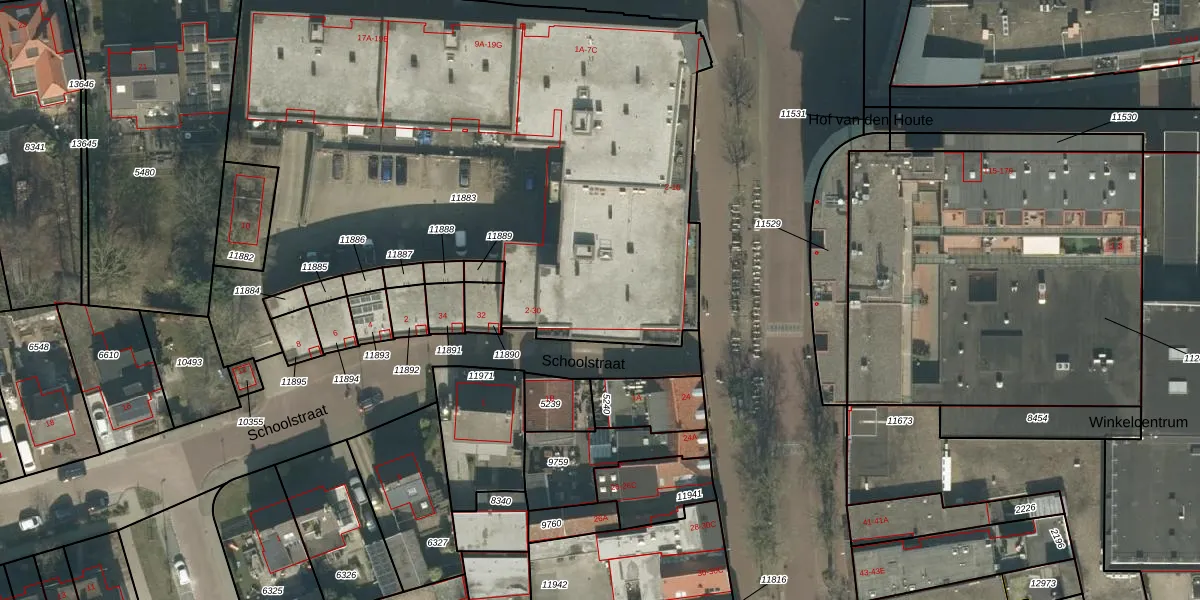 Schoolstraat 10 is gelegen op kadastraal perceel ETN01L11883. Deze kadastrale aanduiding is uniek en wordt gebruikt door het Kadaster om eigendomsrechten en andere zakelijke rechten vast te leggen. Het perceel maakt onderdeel uit van de kadastrale gemeente Etten-Leur.