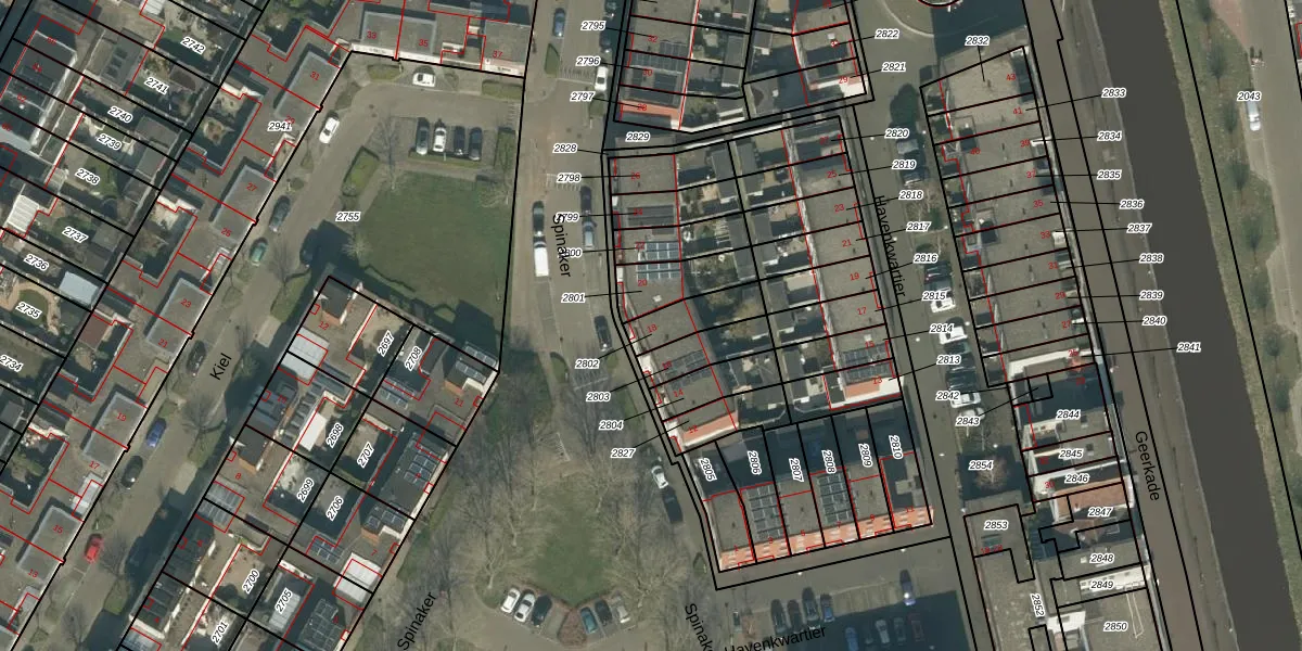 Gebruik de zoekbalk of klik op een perceel voor informatie over de adressen binnen dit perceel.
