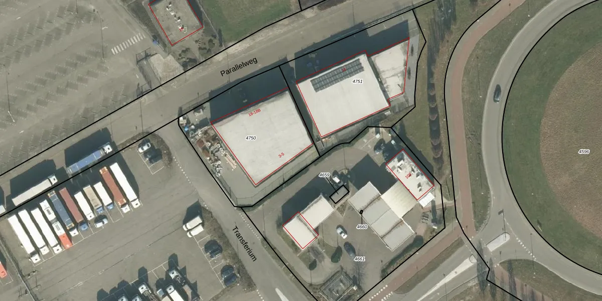 Transferium 5 is gelegen op kadastraal perceel ETN01H4750. Deze kadastrale aanduiding is uniek en wordt gebruikt door het Kadaster om eigendomsrechten en andere zakelijke rechten vast te leggen. Het perceel maakt onderdeel uit van de kadastrale gemeente Etten-Leur.