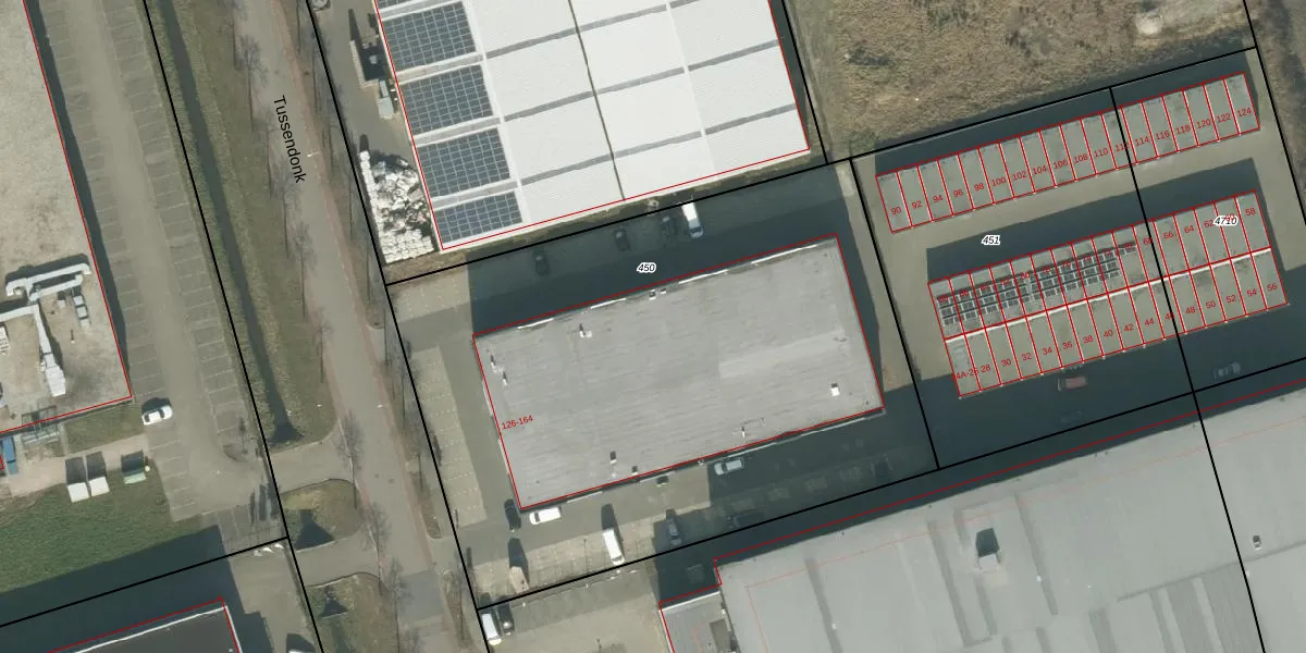 Tussendonk 156 is gelegen op kadastraal perceel ETN01N450. Deze kadastrale aanduiding is uniek en wordt gebruikt door het Kadaster om eigendomsrechten en andere zakelijke rechten vast te leggen. Het perceel maakt onderdeel uit van de kadastrale gemeente Etten-Leur.