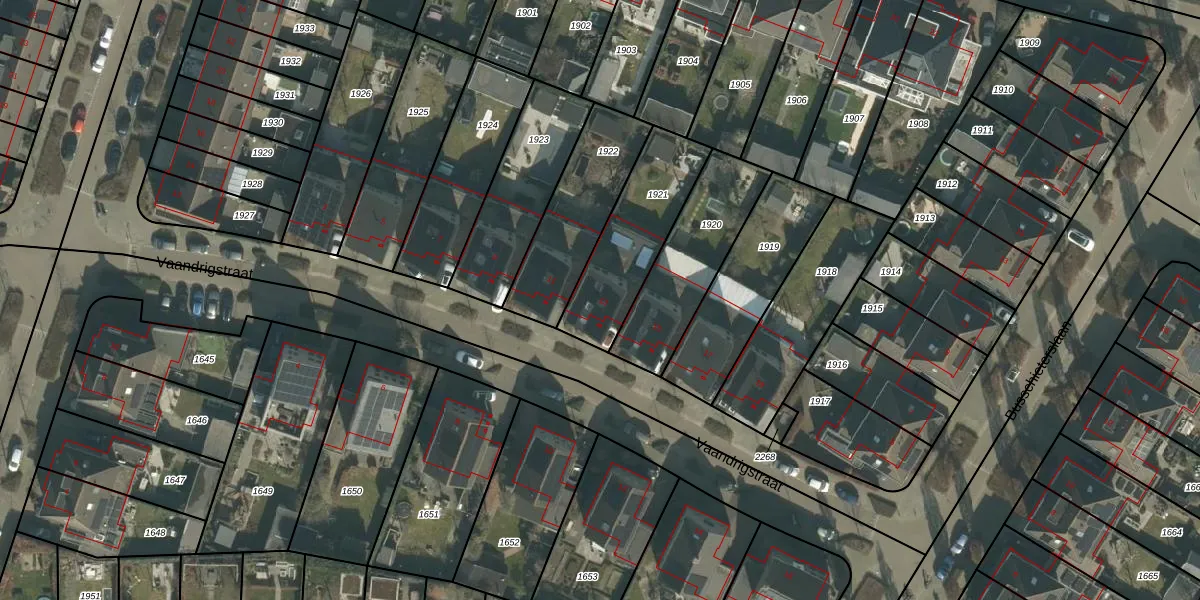Het perceel waarop Vaandrigstraat 13 staat heeft een oppervlakte van 384 m². Dit is een groot perceel. De perceeloppervlakte wordt geregistreerd door het Kadaster. Gedetailleerde informatie over de maten van dit perceel kunt u vinden in het rapport Kadastrale kaart met maatvoering van Vaandrigstraat 13.