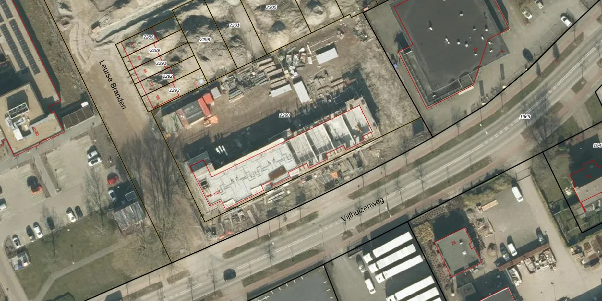 Vijfhuizenweg 11-E is gelegen op kadastraal perceel ETN01D2260. Deze kadastrale aanduiding is uniek en wordt gebruikt door het Kadaster om eigendomsrechten en andere zakelijke rechten vast te leggen. Het perceel maakt onderdeel uit van de kadastrale gemeente Etten-Leur.