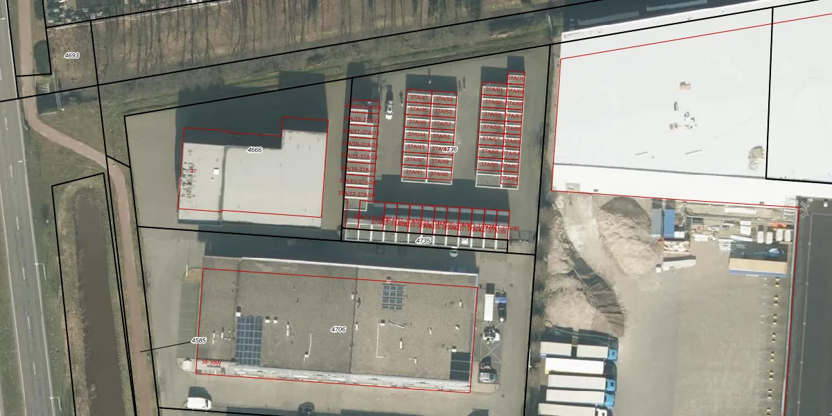 Het adres is gelegen op perceel 4736 in de sectie H en de kadastrale gemeente Etten-Leur. De kadastrale aanduiding is aldus ETN01-H-4736. Het perceel is kleiner dan gemiddeld in Etten-Leur. Het perceel is 1987 m² groot, terwijl het gemiddelde ligt op 2573,22 m². De grootste perceeloppervlakte in de kadastrale gemeente is 27,5 ha. De kleinste oppervlakte bedraagt 0 m². Op het perceel zijn 70 adressen aanwezig. De huidige grenzen van het perceel zijn digitaal in de Basisregistratie Kadaster (BRK) geregistreerd op 01-05-2020.
