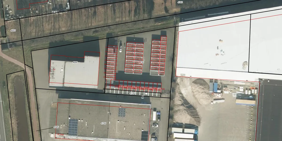Het adres is gelegen op perceel 4736 in de sectie H en de kadastrale gemeente Etten-Leur. De kadastrale aanduiding is aldus ETN01-H-4736. Het perceel is kleiner dan gemiddeld in Etten-Leur. Het perceel is 1987 m² groot, terwijl het gemiddelde ligt op 2576,07 m². Het grootste perceel in de kadastrale gemeente is 27,5 ha. Het kleinste perceel heeft een oppervlakte van 0 m². Op het perceel zijn 70 adressen aanwezig. De huidige grenzen van het perceel zijn digitaal in de Basisregistratie Kadaster (BRK) geregistreerd op 01-05-2020.