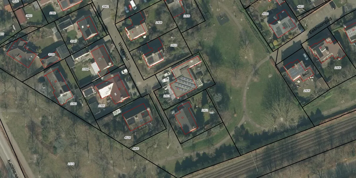 Gebruik de zoekbalk of klik op een perceel voor informatie over de adressen binnen dit perceel.