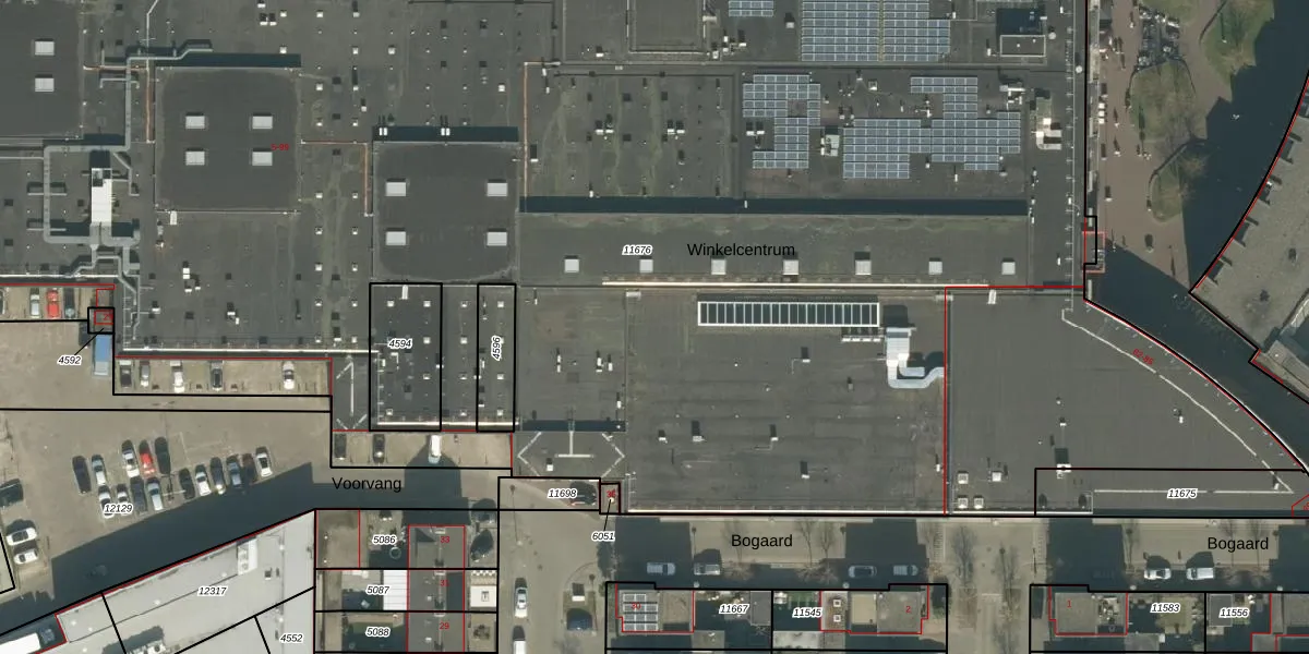 Winkelcentrum 45 is gelegen op kadastraal perceel ETN01L11676. Deze kadastrale aanduiding is uniek en wordt gebruikt door het Kadaster om eigendomsrechten en andere zakelijke rechten vast te leggen. Het perceel maakt onderdeel uit van de kadastrale gemeente Etten-Leur.