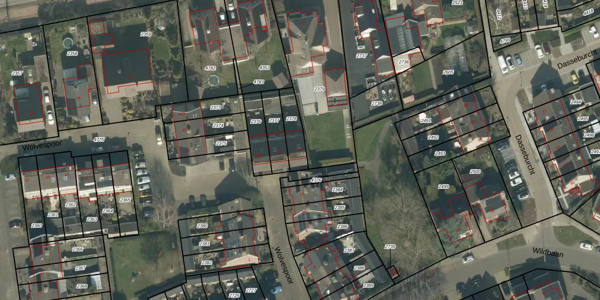 Wolvespoor 14 is gelegen op kadastraal perceel ETN01K2378. Deze kadastrale aanduiding is uniek en wordt gebruikt door het Kadaster om eigendomsrechten en andere zakelijke rechten vast te leggen. Het perceel maakt onderdeel uit van de kadastrale gemeente Etten-Leur.