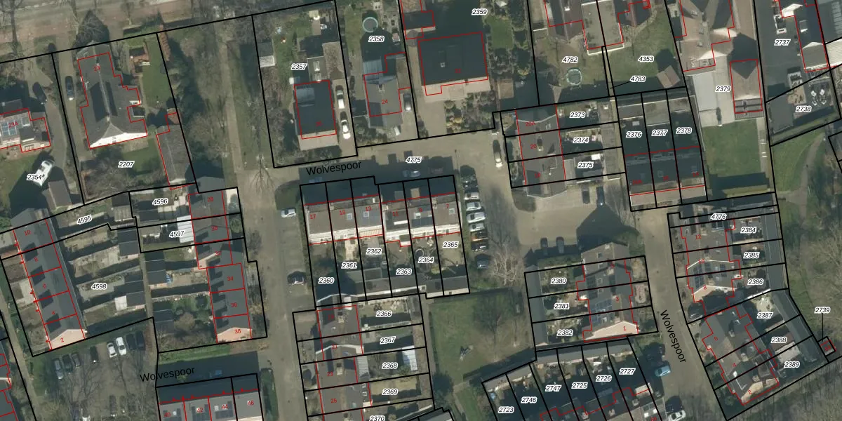 Wolvespoor 9 is gelegen op kadastraal perceel ETN01K2364. Deze kadastrale aanduiding is uniek en wordt gebruikt door het Kadaster om eigendomsrechten en andere zakelijke rechten vast te leggen. Het perceel maakt onderdeel uit van de kadastrale gemeente Etten-Leur.