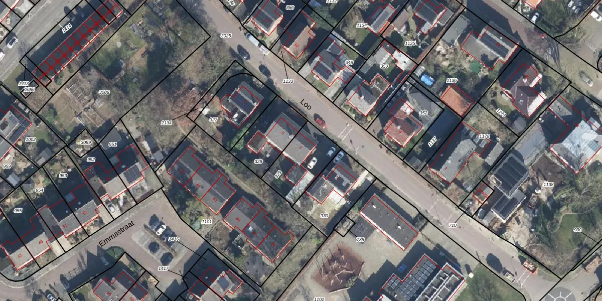 Het perceel waarop Loo 3 staat heeft een oppervlakte van 350 m². Dit is een groot perceel. De perceeloppervlakte wordt geregistreerd door het Kadaster. Gedetailleerde informatie over de maten van dit perceel kunt u vinden in het rapport Kadastrale kaart met maatvoering van Loo 3.