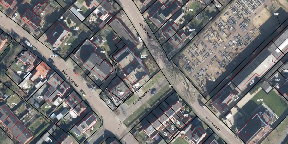 Het perceel waarop Molenstraat 18 staat heeft een oppervlakte van 989 m². Dit is een groot perceel. De perceeloppervlakte wordt geregistreerd door het Kadaster. Gedetailleerde informatie over de maten van dit perceel kunt u vinden in het rapport Kadastrale kaart met maatvoering van Molenstraat 18.