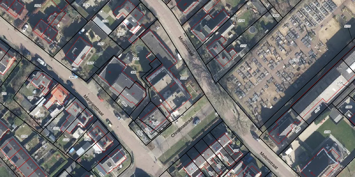 Het perceel waarop Molenstraat 18-C staat heeft een oppervlakte van 989 m². Dit is een groot perceel. De perceeloppervlakte wordt geregistreerd door het Kadaster. Gedetailleerde informatie over de maten van dit perceel kunt u vinden in het rapport Kadastrale kaart met maatvoering van Molenstraat 18-C.