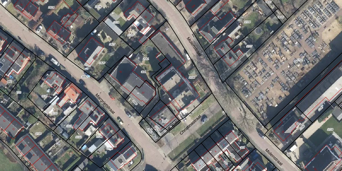 Het perceel waarop Molenstraat 20-A staat heeft een oppervlakte van 989 m². Dit is een groot perceel. De perceeloppervlakte wordt geregistreerd door het Kadaster. Gedetailleerde informatie over de maten van dit perceel kunt u vinden in het rapport Kadastrale kaart met maatvoering van Molenstraat 20-A.