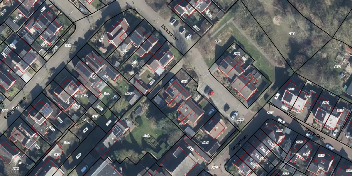 Het perceel waarop Mozartlaan 10 staat heeft een oppervlakte van 740 m². Dit is een groot perceel. De perceeloppervlakte wordt geregistreerd door het Kadaster. Gedetailleerde informatie over de maten van dit perceel kunt u vinden in het rapport Kadastrale kaart met maatvoering van Mozartlaan 10.